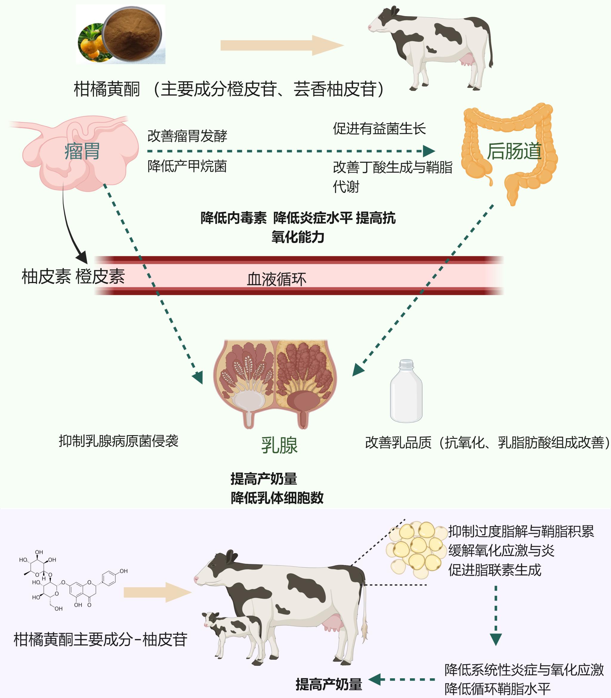 赵玉超研究方向为奶牛营养与饲料、天然植物提取物开发与利用,主持国家自然科学基金青年科学基金、北京市自然科学基金面上项目、国家重点研发计划子课题、中国博士后科学基金等项目6项,在Microbiome、Journal of Hazardous Materials等期刊发表SCI论文20余篇。本次获奖成果以解决高产奶牛易发代谢紊乱、改善奶牛机体代谢稳态为目标导向,以饲用天然植物活性物质产业化应用需求为牵引,选择柑橘黄酮作为突破口,综合高效制备技术、体外活性评价、谱效关系研究和体内功效机制研究,成功建立了柑橘黄酮的高效制备与质控体系,并揭示了其生物转化与瘤胃微生物的互作机制,阐明了其在改善奶牛机体代谢稳态中的关键作用与机制。相关成果已在国内外知名学术期刊发表相关期刊论文16篇(其中SCI期刊论文12篇,中科院1区8篇,影响因子>10的2篇)。研究团队在北京首农畜牧规模化牧场进行了示范应用评估,柑橘黄酮饲喂后,奶牛瘤胃甲烷排放减少10%,平均日产奶量提高1.1 kg/d,乳体细胞数降低23%,乳腺炎全群发病率低于6%,乳中不饱和脂肪酸比例提高2.5个百分点,有效改善了奶牛免疫代谢稳态与健康状况、提升了乳品质,显著提升了奶牛养殖效益和生态效益。