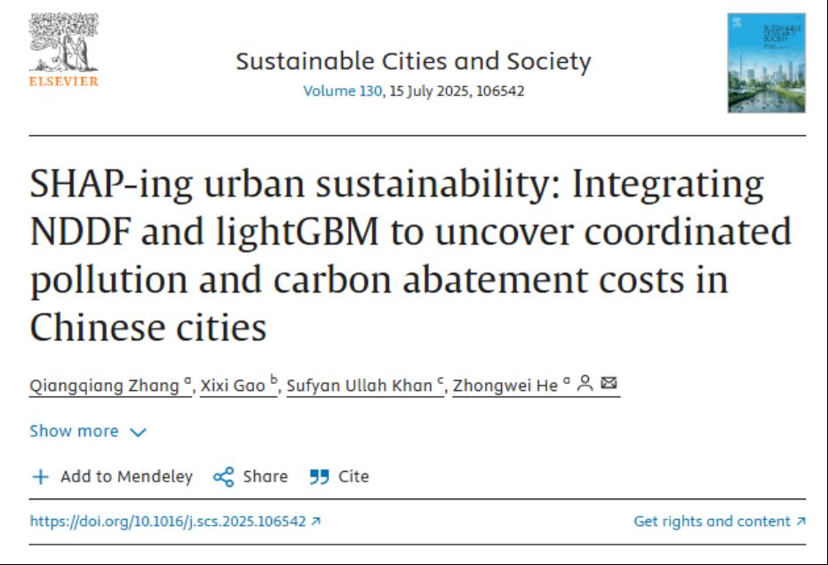近日,经济管理学院何忠伟教授团队在Sustainable Cities and Society(中科院1区,IF=12.0)在线发表了题为“SHAP-ing urban sustainability: Integrating NDDF and lightGBM to uncover coordinated pollution and carbon abatement costs in Chinese cities”的研究论文,创新性地运用了融合非径向方向性距离函数(NDDF)与LightGBM模型的综合分析框架,辅以SHAP(Shapley加法解释)方法,系统揭示了中国287个城市在2006—2019年期间污染与碳减排的协同成本及其影响机制。