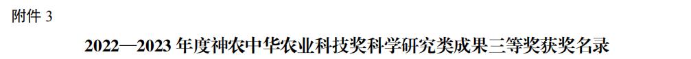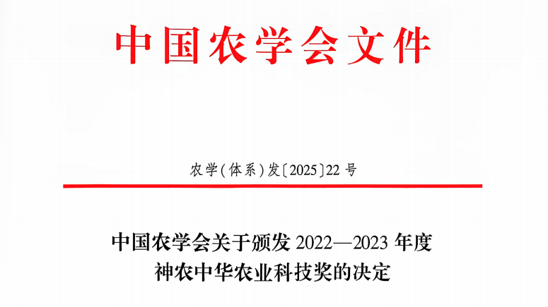 神农中华农业科技奖是2006年经农业部、科技部批准设立的面向全国农业行业的综合性科学技术奖,每两年评选一次,主要奖励为我国农业科技进步和农业农村经济发展作出突出贡献的农业科技人员和创新团队。据悉,2022—2023年度神农中华农业科技奖奖项包括科学研究类成果一等奖40项、二等奖50项、三等奖59项,优秀创新团队奖25个,科学普及奖14项。