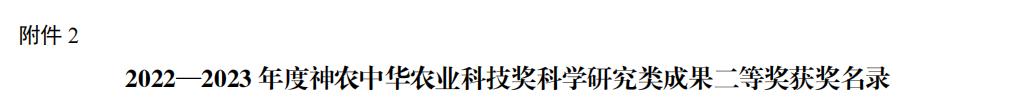 近日,中国农学会公布了2022—2023年度神农中华农业科技奖结果,我校共获奖2项,其中以第一完成单位获二等奖1项。